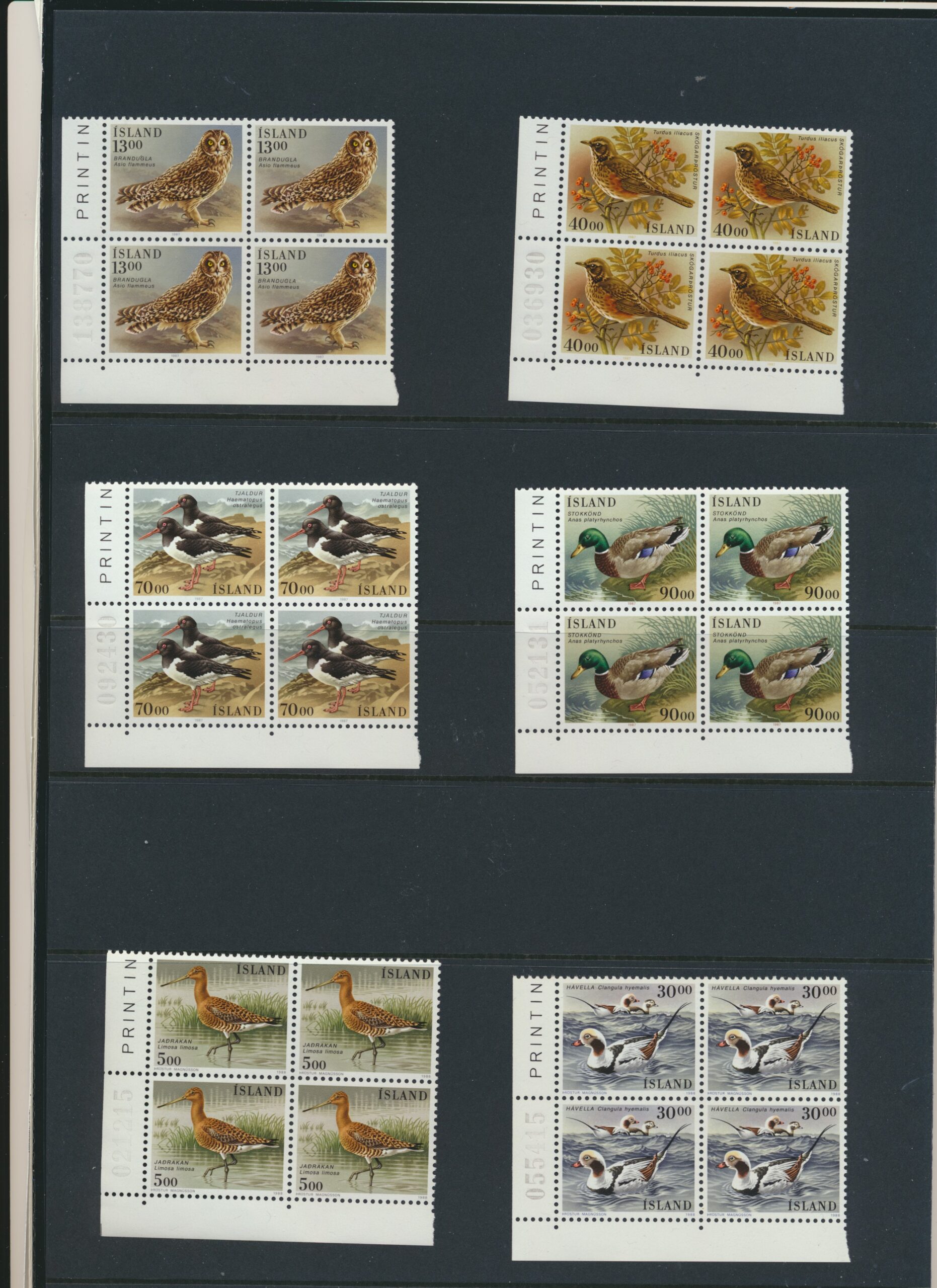 Icelandic Birds in NH Mint blocks of four. All in full sets from 1987-1990