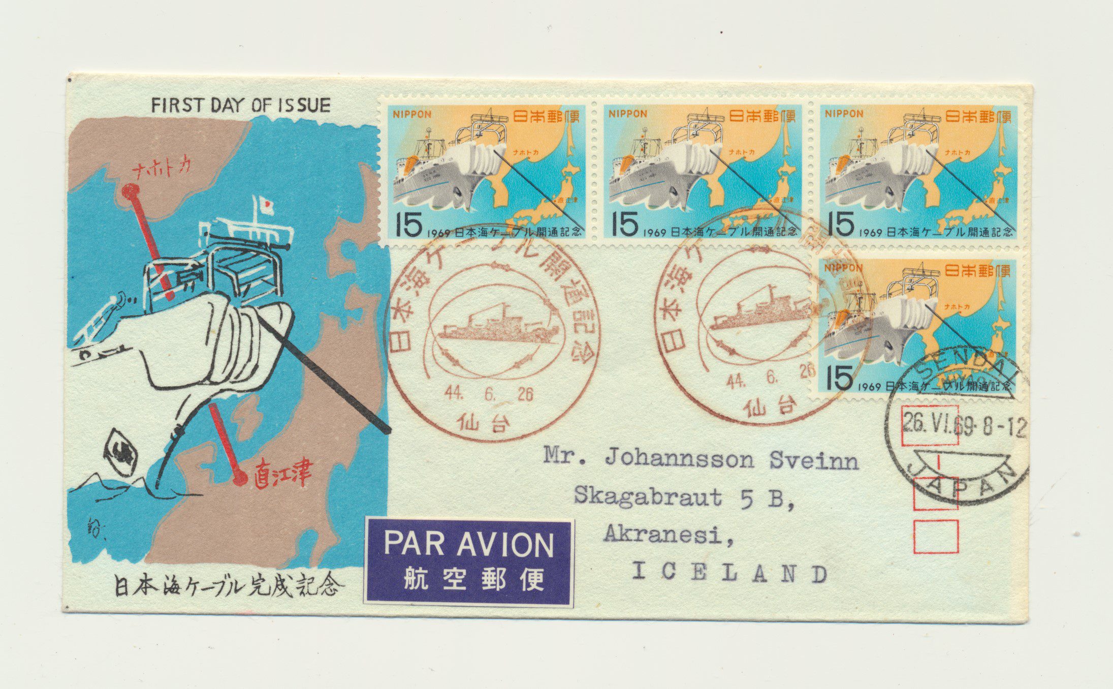 Japan / Nippon Very fine FDC Cover from 1969. Sent to Iceland.