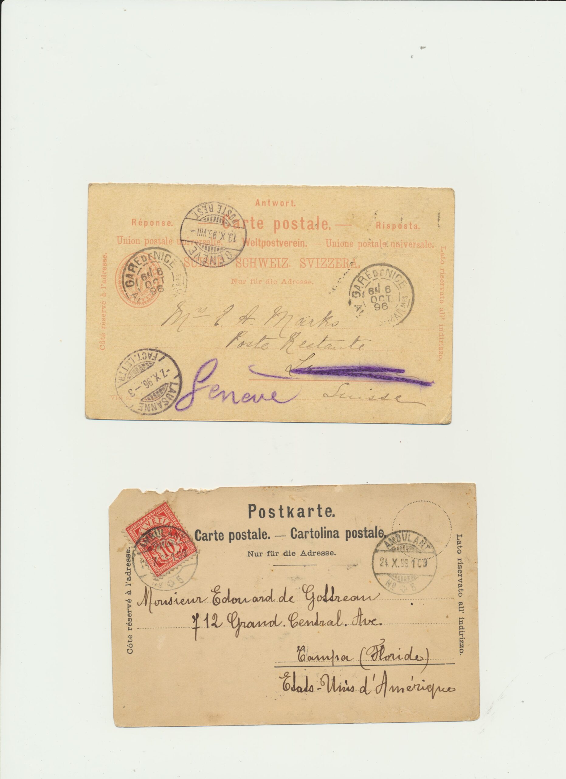 Switzerland – Suisse – two Carte Postale from 1896-9. All used with full letter.