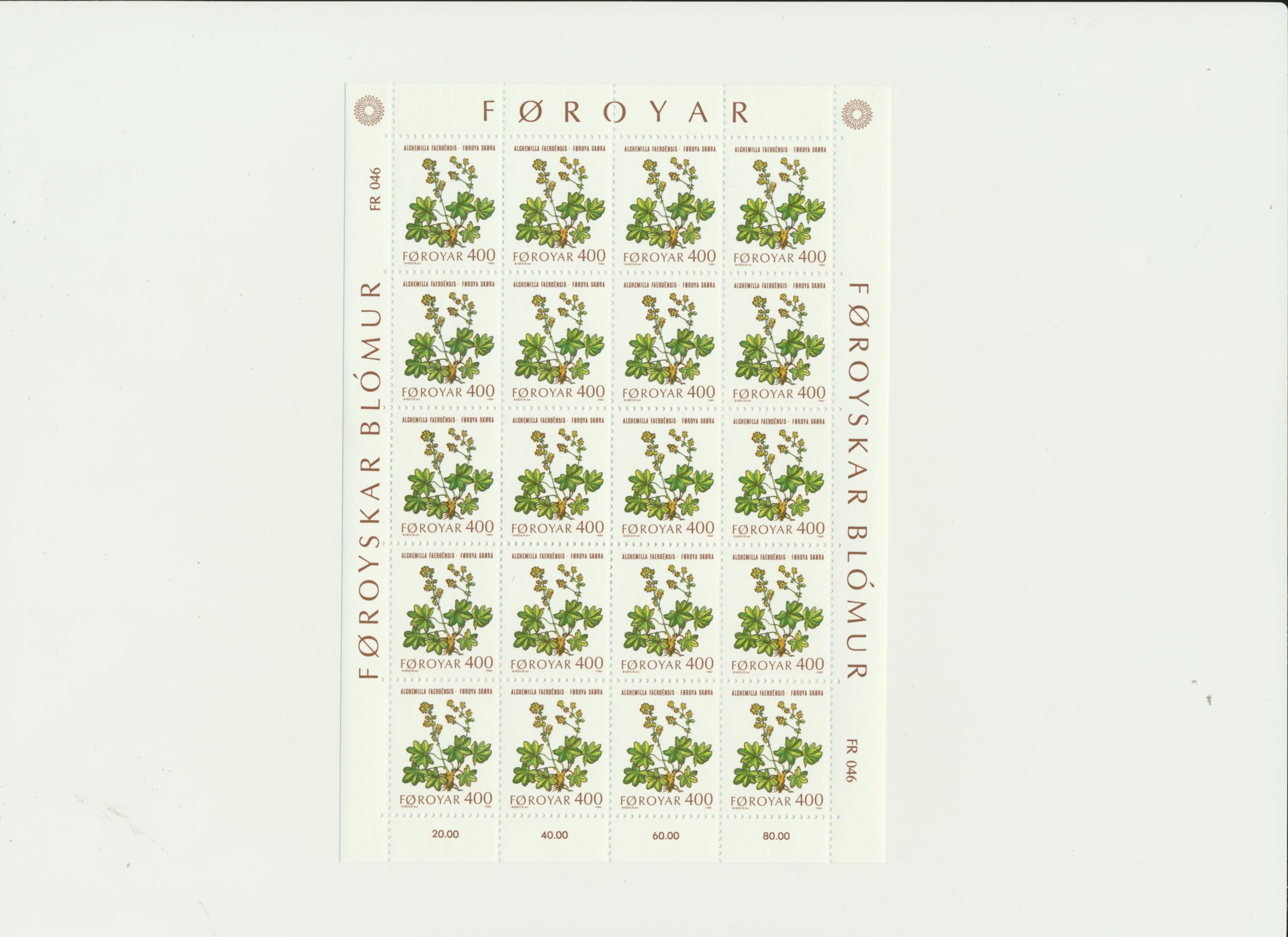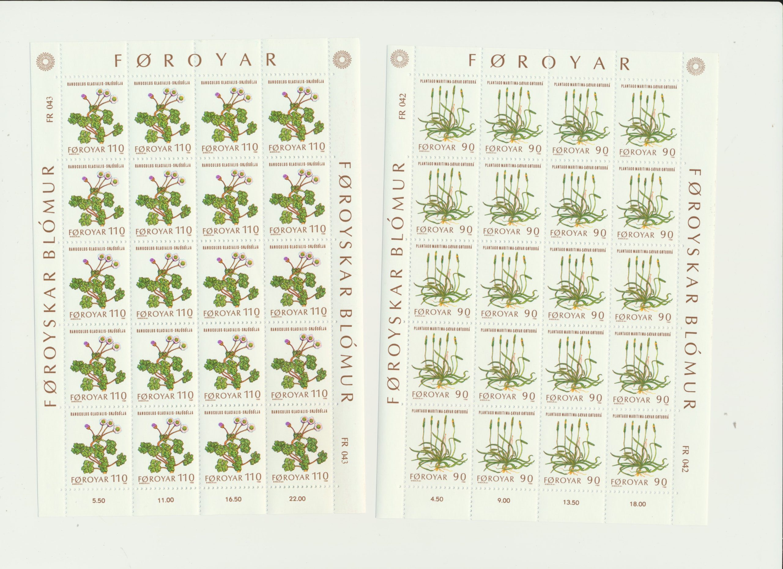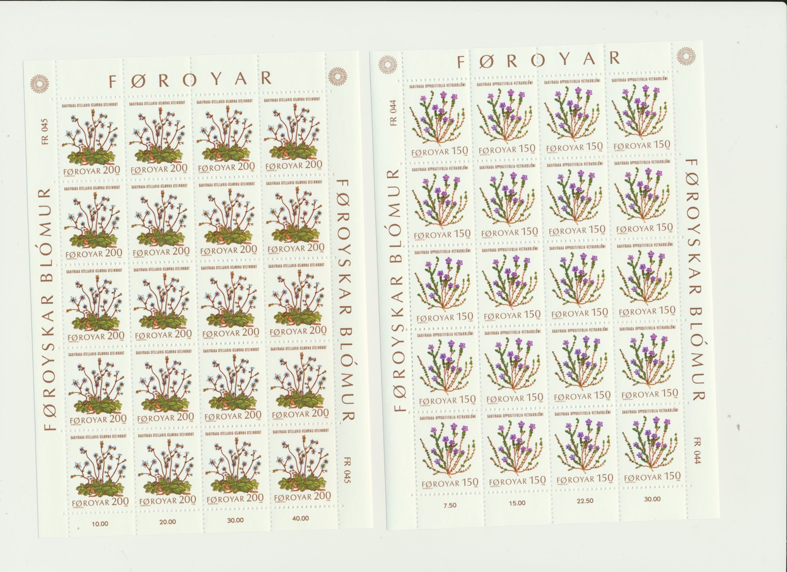 The Faroes Full set of 5 in whole sheets Flowers NH Mint.